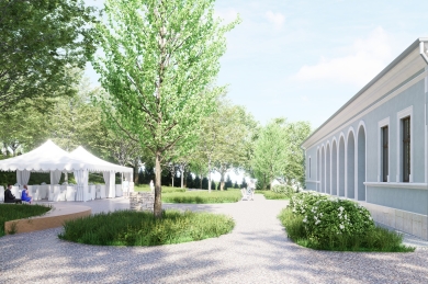 Deși a rămas ruinat vreme de mulți ani, la sfârșitul anului trecut au început lucrările de punere în siguranță a clădirii și, împreună cu noul proprietar, Errigal Triumf Investiții, am dezvoltat un prim concept de revitalizare a întregului domeniu: acesta presupune reîntregirea ansamblului istoric (cu restaurarea clădirii principale și transformarea sa într-un spațiu multifuncțional capabil să găzduiască evenimente culturale și sociale), reconstruirea anexelor, reamenajarea spațiilor exterioare adiacente, cât și extinderea spre grădină a ansamblului istoric prin amplasarea unor construcții noi pentru cazare și agrement, inspirate din arhitectura locală.